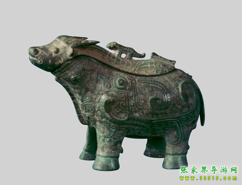 展出有商周時期至明清時期的各類文物100余件,其中包括:禮器、兵器、量器以及古人在日常生活中所使用的各類生活器具,是研究和了解衡陽先民在這塊土地上繁衍生息的最生動的教材;也是研究當時衡陽處于楚越兩大文化相互生存和融合的最好的實物資料。如國寶動物紋青銅提梁卣、越式鼎、楚式青銅劍等等。在180平方米的展室中陳列了青銅精品90余件。其中以春秋動物紋提梁卣最具魅力。與它相媲美的商代青銅牛尊,工藝之精湛,美侖美奐。