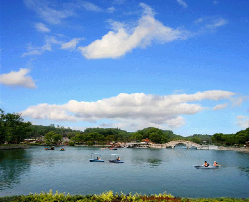 君山又是一個秀麗的綠洲,島上的草木自古就很聞名。現(xiàn)在每逢初春漲水之前,湖灘上綠草綿綿,野花斑斕,頗具草原風(fēng)味;一到夏天水漲,葦葉青青,水鳥出沒,又是一派蘆蕩景象。君山有各種各樣的樹,多達200余種,各種花卉,四時怒放,真是青碧連云,香飄全島。叢綠之中,尤以竹林、茶園最富特色。