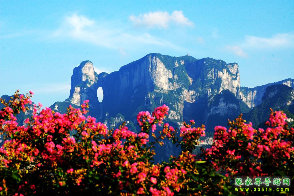 天門洞位于天門山山體的中上部,是世界上最高海拔的天然穿山溶洞,海拔1300米 ,其高131.5米,寬57米 ,深60米。它南北對開于千尋素壁之上,扶搖而通天,似明鏡似天門鑲嵌于蔚蔚天幕之上,終年吞云吐霧,蔚為壯觀中更加神秘莫測。“天門洞開云氣通,江東峨眉皆下風(fēng)”元朝的著名詩人張兌曾這樣贊嘆,磅礴的氣勢由此可見。1700多年來,這一道奇絕天下的勝景吸引著無數(shù)的探訪者趨之若騖。特別是在1999年,世界特技飛行大師架機(jī)穿越天門洞,在全球引發(fā)了轟動(dòng)效應(yīng),收看現(xiàn)場直播的觀眾達(dá)到8億之多。