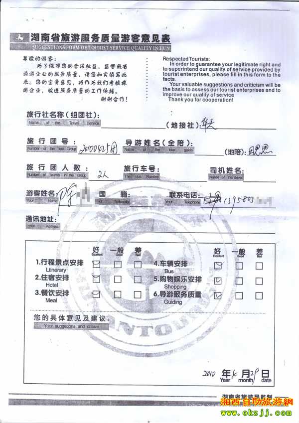 2010年4月29號陳先生旅游質(zhì)量反饋