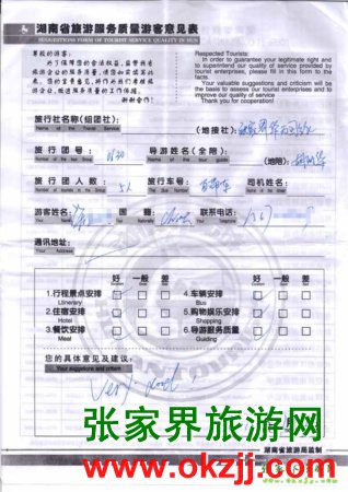 2010年7月4號(hào)許先生一行5位旅游質(zhì)量反饋