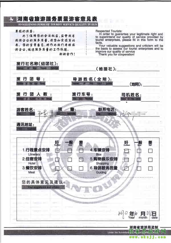 2010年10月4日陳先生旅游質(zhì)量反饋
